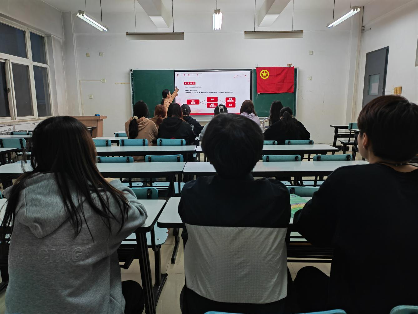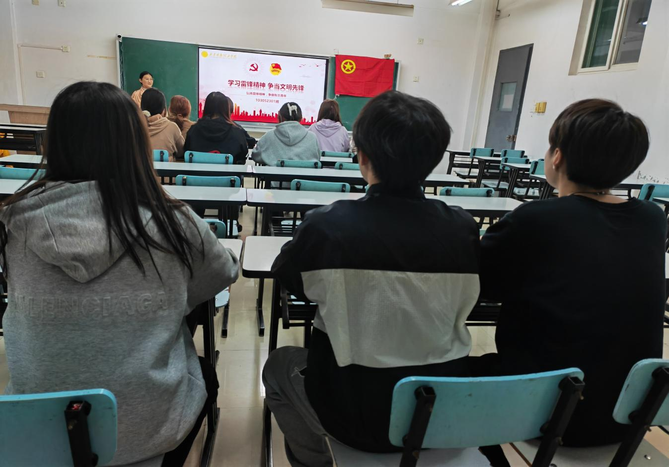 随后,团支部组织委员引导同学们唱响雷锋之歌,学习关于雷锋的歌曲,组织同学们观看雷锋电影,在影音里学雷锋。