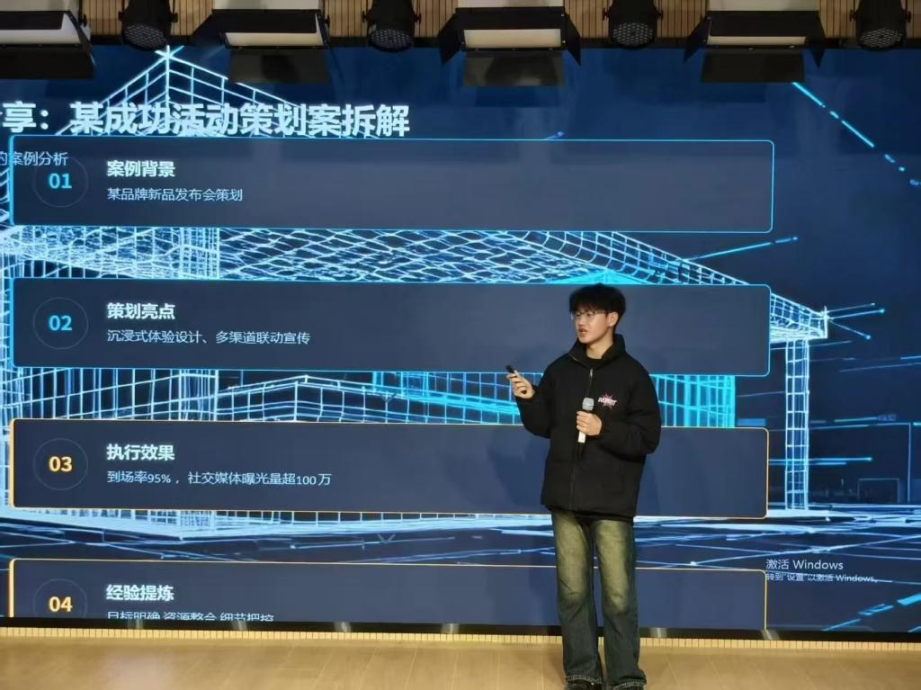 在互动交流环节,现场氛围热烈。同学们围绕策划书制作中遇到的各种难题积极提问,高洋耐心倾听、细致解答,通过实际案例拆解与经验分享,为同学们后续完善策划案提供了有力指导。