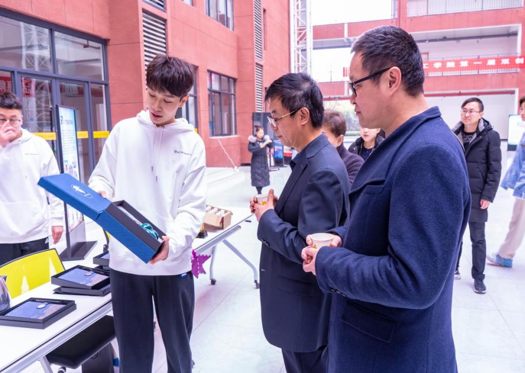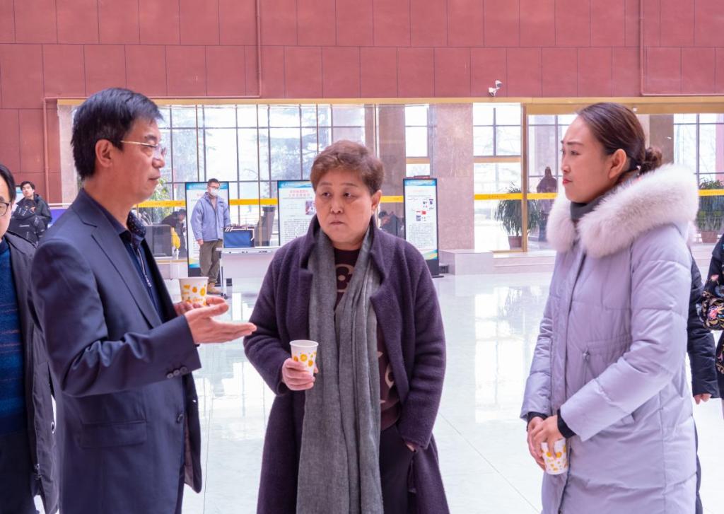 在参观的过程中校领导与参展教师和同学进行了亲切交流。