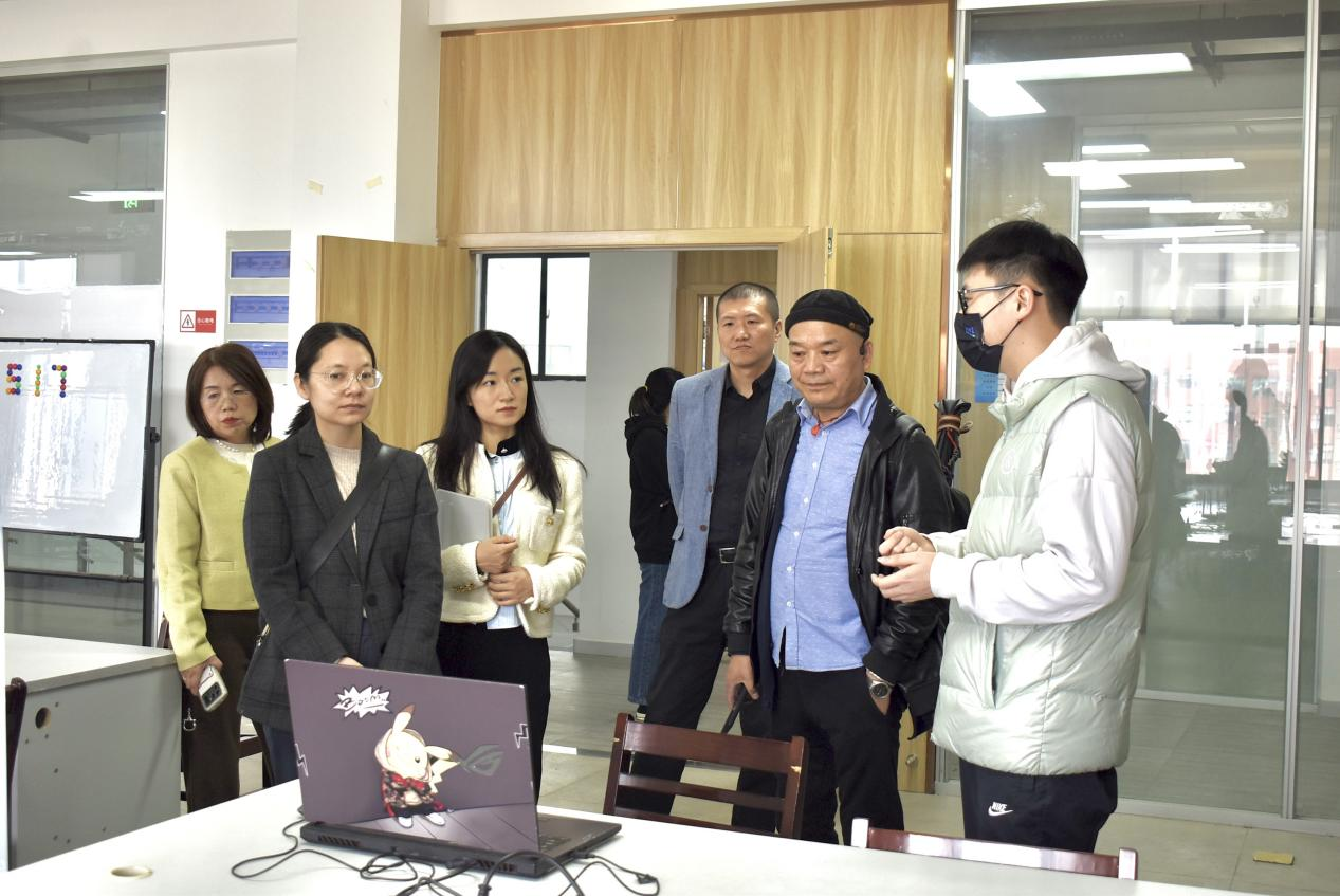 刘璐一行在崔岩的陪同下先后参观了大创项目实验室和各工作室,听取相关负责人的讲解,对于各工作室和实验室所取得的成就表示肯定和赞扬,参观结束后,在2号实训楼北507进行座谈。