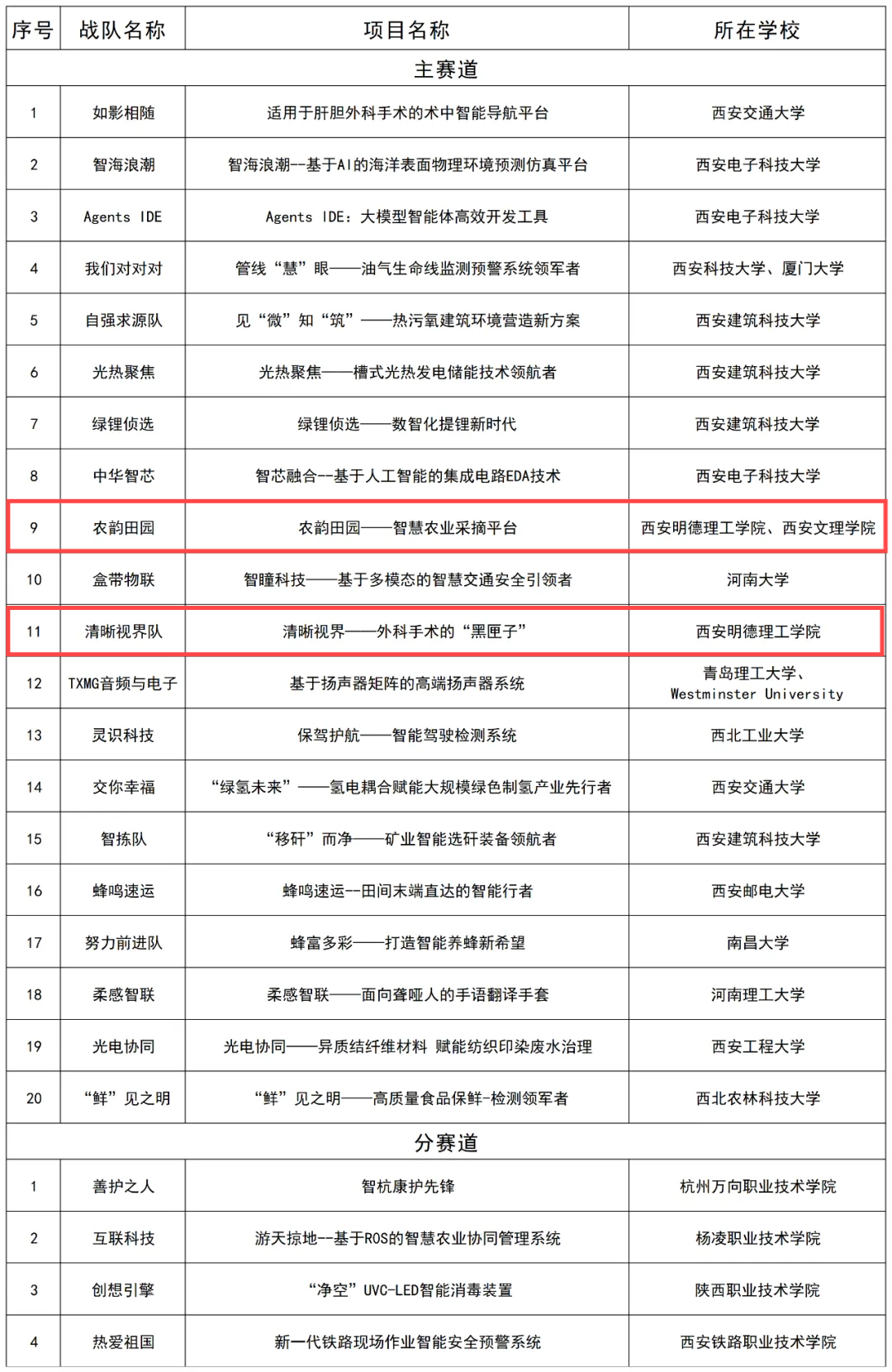 以下为晋级项目名单(项目排名不分先后):