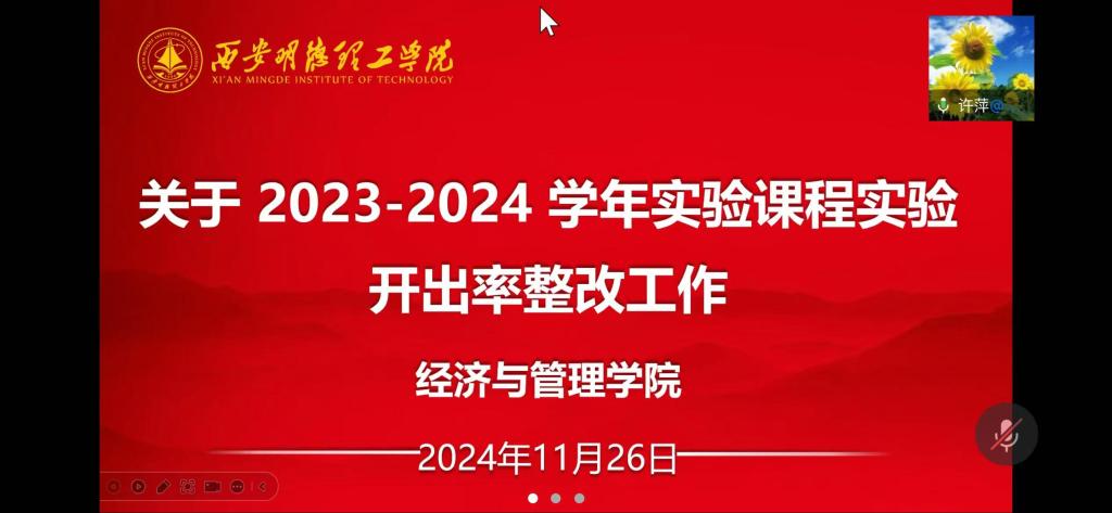 近日,根据教务处对2023-2024学年实验开出率检查反馈情况,经济与管理学院召开了实验课开出率整改工作动员会。学院副院长许萍、办公室主任张蓓、各专业负责人及教务员参加了会议,会议由许萍主持。