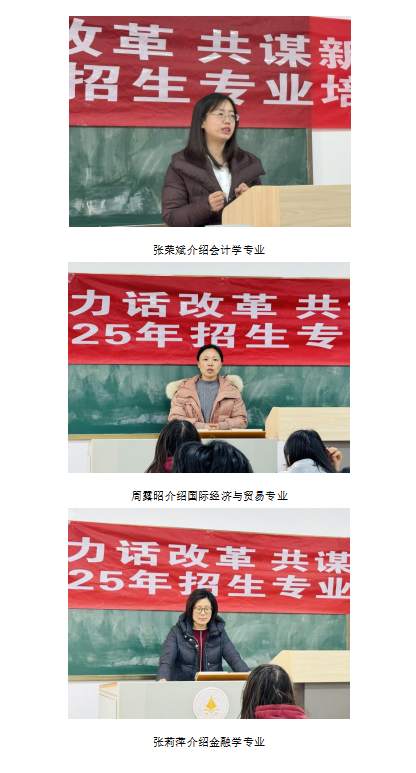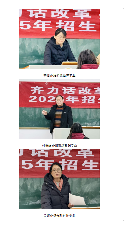 培训伊始,侯磊介绍了学校2025年本科招生宣传工作的安排和部署,希望更多生源高中考取beat365的学子积极参与到招生工作中。对已经考取的学子作为校友对学校有着深厚的情感,他们的参与可以加强校友之间的联系,增强校友的凝聚力和归属感。经济与管理学院的张荣斌、关娜、李昭、张莉萍、周露昭、付铁岩和张嘉婧7位老师依次详细地介绍了各专业的基本情况和办学特色,向学生们充分展示了学院在办学条件和人才培养方面的优势,并耐心解答现场学生的提问。