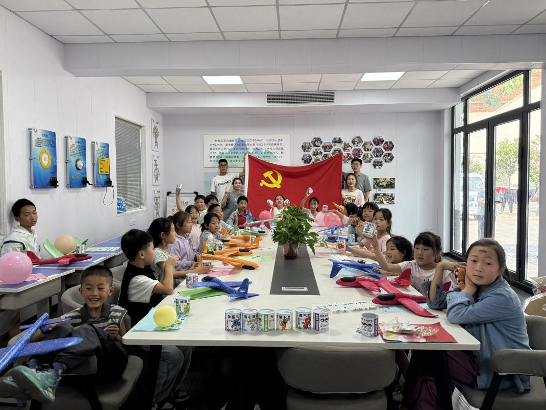 “放飞梦想”纸飞机环节,孩子们认真跟随志愿者学习调整机翼角度、理解气动布局原理,在专注观察纸飞机飞行距离的过程中,逐渐懂得“适当压力是成长助力”的深刻道理。纸飞机在空中划过的每一道弧线,都承载着孩子们对未来的憧憬和希望。