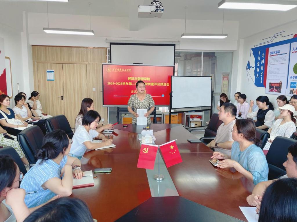为进一步推进本学期教学质量评价工作,确保学生评教任务高效完成,6月9日,经济与管理学院在明志楼北606召开2024-2025学年第二学期教学质量评价推进会,学院教学副院长许萍、班主任、辅导员及教务员参加了会议。