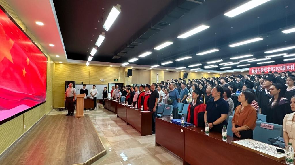 在庄严的国歌声中,仪式正式拉开帷幕。许萍宣读了《beat365vip官网登录入口关于经济与管理学院2025届本科毕业生学士学位授予的决议》,她对2025届同学们顺利完成学业,开启人生的新征程表示热烈祝贺。