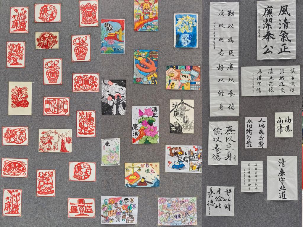 展览共展出剪纸、书法、海报、非遗竹编、非遗衍纸、手抄报等六大类作品,充分融合了传统文化与现代创意。每一件作品都凝聚着创作者对廉洁文化的深刻理解,以艺术语言传递清风正气。主题鲜明的海报以赤色笔锋勾勒时代重任,非遗剪纸技法与廉洁主题相映生辉,手抄报以生动的图文叩击心灵,发人深省。翰墨丹青间,廉洁文化的内涵通过书画作品得到深刻诠释,增强廉洁文化的吸引力和感染力,教育引导师生涵养廉洁自律道德操守,严守廉洁从教、廉洁从学底线,以廉洁铸就高尚师魂,用奋斗担当育人使命。大家纷纷表示,作品将思想性与艺术性有机结合,把廉洁文化与中华优秀传统文化、经济与管理学院学科专业特色深度融合,形式多样、构思巧妙,在今后的工作、学习和生活中,将以廉洁文化为养分,不断涵养自身的精神世界与道德品格,筑牢廉洁自律防线,时刻严守纪律红线与规矩底线,持续增强自我约束的意识与能力。