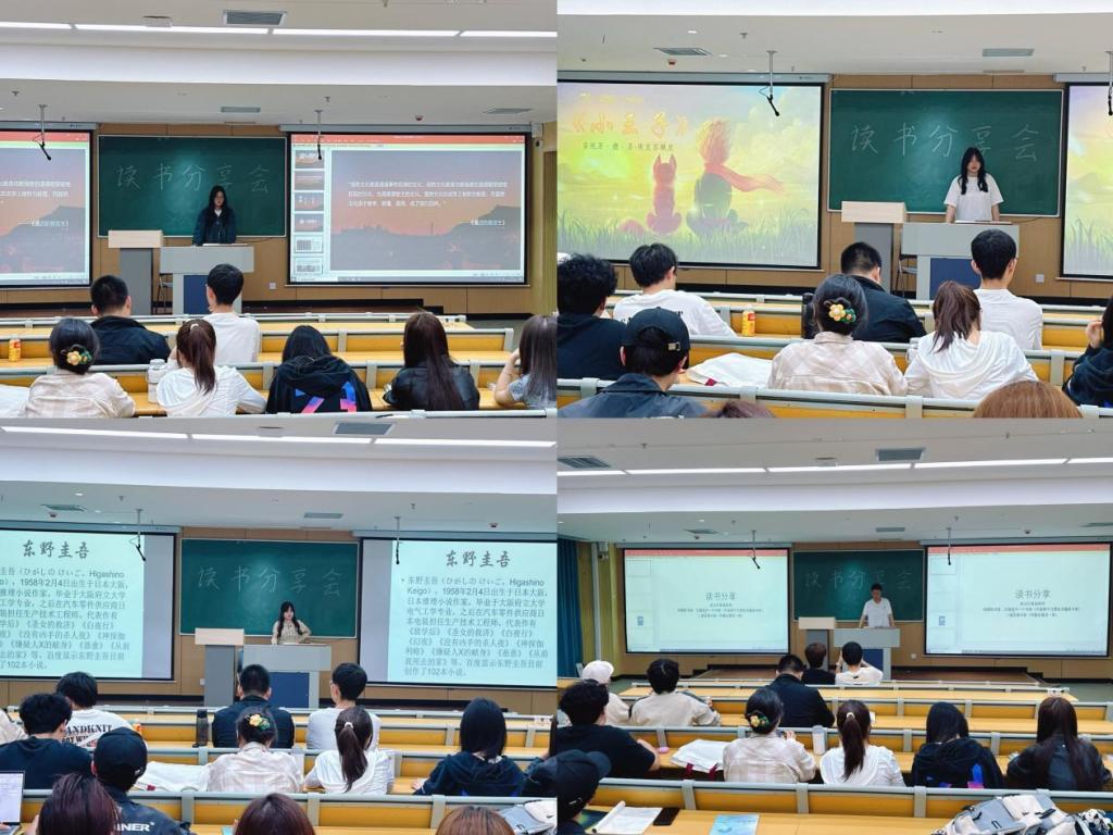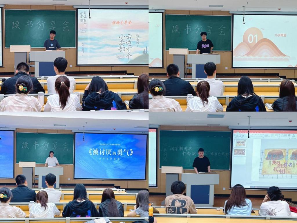 分享环节气氛热烈,精彩纷呈。来自不同年级的十二位学生代表依次上台,结合精心制作的PPT,分享了《红岩》、《青春之歌》、《太阳照在桑干河上》、《习近平的七年知青岁月》、《新时代的中国青年》等一批经典著作与畅销读物的阅读心得。同学们或深情讲述江姐、林道静等革命先辈为理想信念英勇奋斗、不畏牺牲的感人故事,深刻阐释了红色基因的丰富内涵;或结合伟人的青年成长经历,探讨如何锤炼坚强意志、扎根实践沃土;或立足经济学、管理学的专业视角,畅谈如何将个人学业、未来职业规划与国家发展大局相结合,表达了将青春华章写在祖国大地上的坚定决心。每一位分享者的真情流露都引发了在场师生的强烈共鸣,台下掌声阵阵。