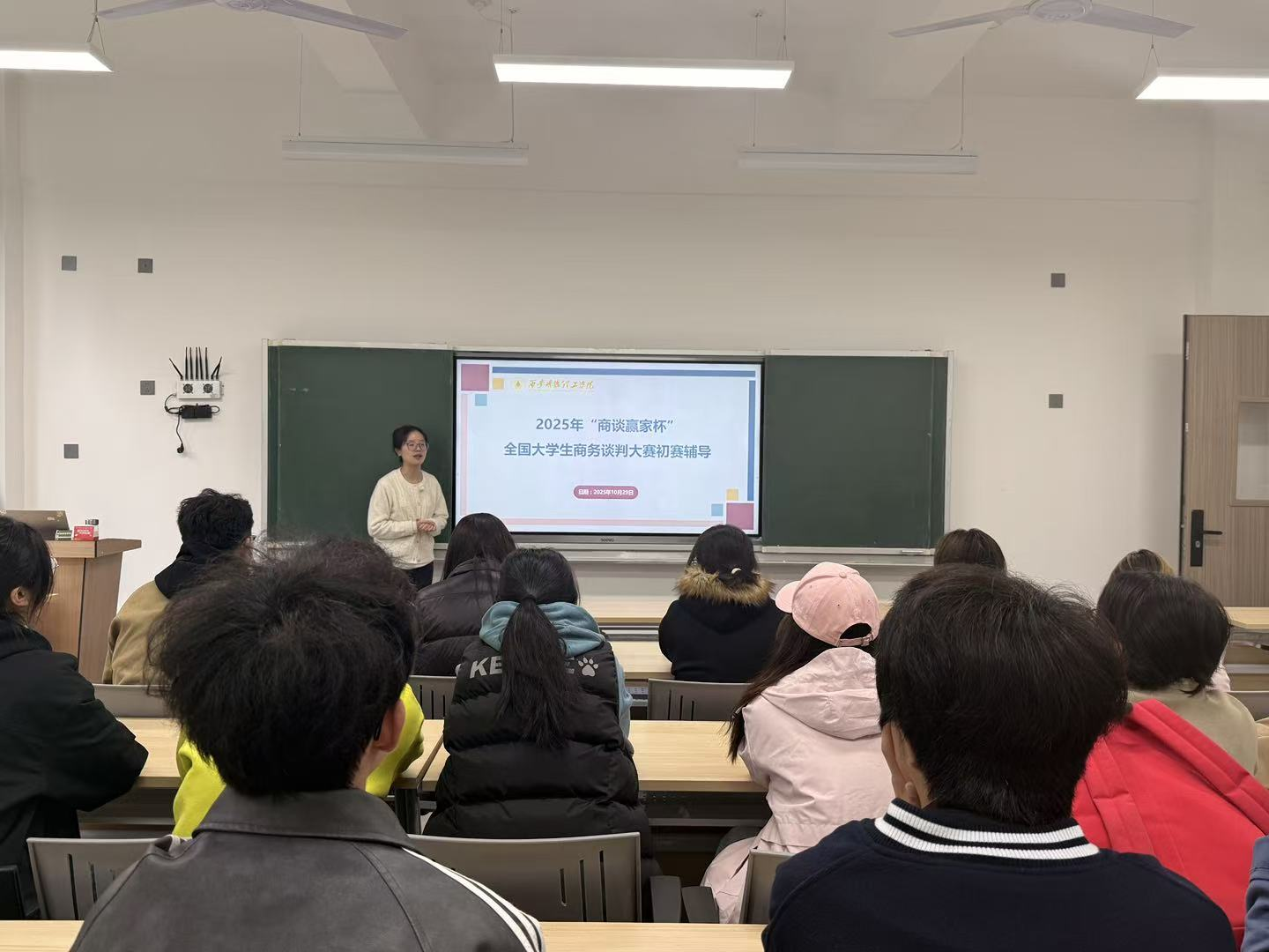 10月29日,金融科技专业张译心、杨澜两位老师联合开展赛前专项培训,为通过2025 年“商谈赢家杯”全国大学生商务谈判大赛及大学生创新创业竞赛营销决策比赛知识赛与初赛选拔的参赛团队进行决赛的赛前培训。