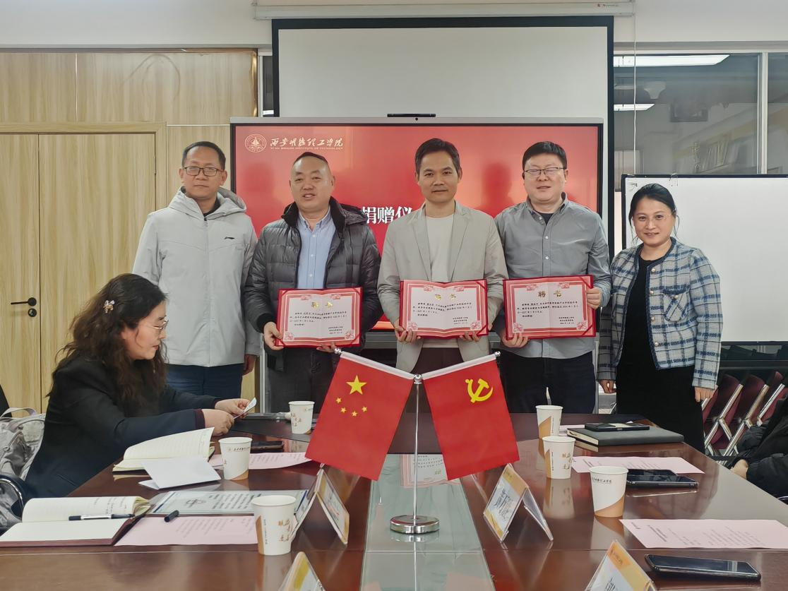 1 月 15 日下午,深圳希施玛数据科技有限公司向beat365vip官网登录入口数字金融产业学院捐赠教学资源仪式在明志楼北606 举行。深圳希施玛数据科技有限公司高级副总经理黄万胜一行、beat365vip官网登录入口校企合作中心副主任崔岩、经济与管理学院班子成员、专业负责人代表共同出席仪式,仪式由数字金融产业学院副院长刘敏主持。