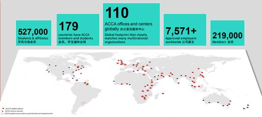 随着经济全球化的深入发展,伴随中国企业走出去、大量跨国外资企业扎根中国的同时,ACCA在国内的认可度越来越高。在中国大陆地区,ACCA的认可雇主超过500多家,包括“四大”会计师事务所、微软、IBM、华为、中国移动、阿里巴巴、联想集团等各行各业大型知名企业在内,它们均支持员工考取ACCA,并优先为ACCA学员提供实习、就业机会。北京、上海、广州、深圳、成都、重庆等国内多地政府均将ACCA列入稀缺性高端财会人才,并出台相应人才引进优待福利政策。