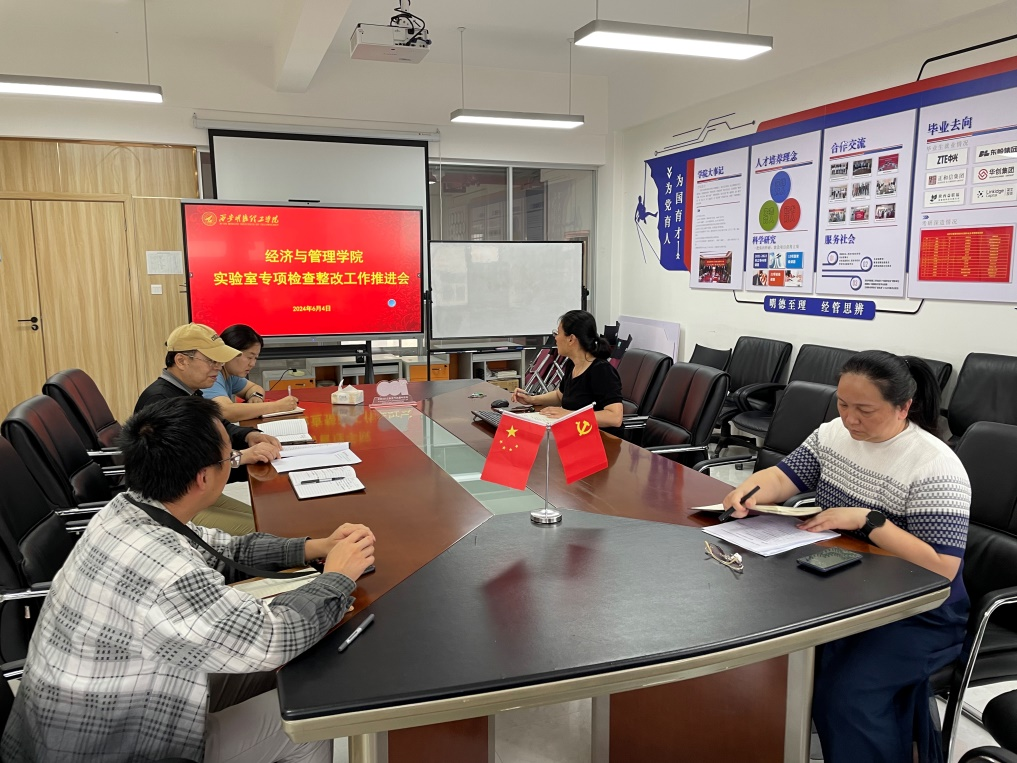 为落实教务处专家组对学院实验室专项检查反馈的整改意见,经济与管理学院于6月4日在明志楼北606召开实验室专项检查整改工作推进会,学院副院长许萍、办公室主任张蓓、全体实验员和教务员参加了会议,会议由许萍主持。