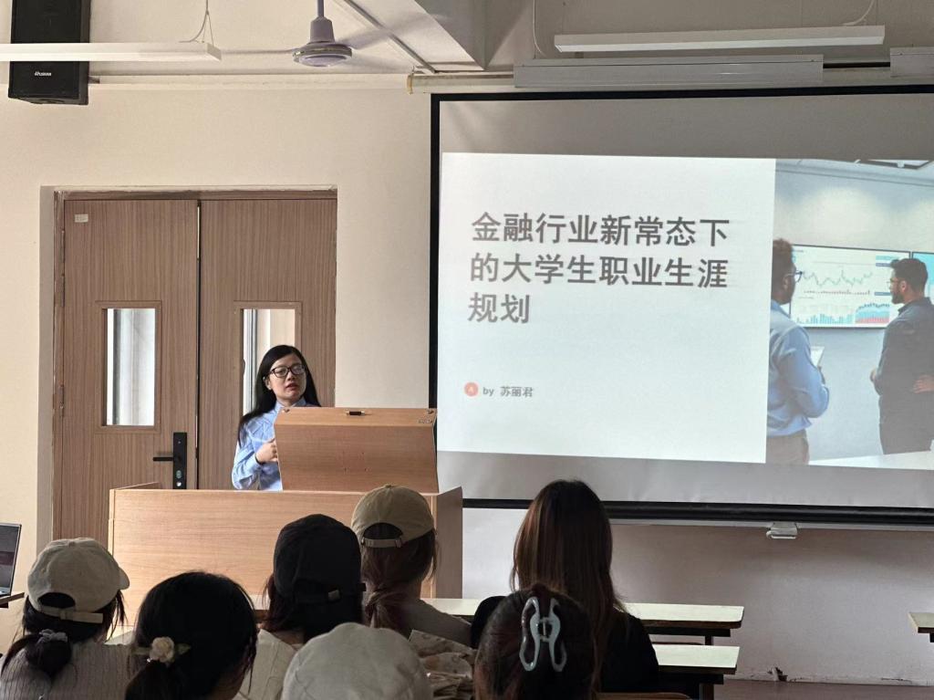 中航信托的讲师们以其丰富的从业经验,为现场师生呈现了一场场精彩纷呈的讲座。苏丽君老师从宏观经济视角出发,分析了全球经济格局下中国经济的独特优势和面临的挑战;刘辰辰老师则聚焦金融市场,分享了金融创新的最新成果及其对经济发展的推动作用;马振华老师结合企业内部管理的实际案例,阐述了现代企业管理的精髓和人才培养的关键要素;曲燕婷老师从企业人力资源的角度出发,提出当代大学青年应当如何调整自身来应对企业不断提升的用人需求。