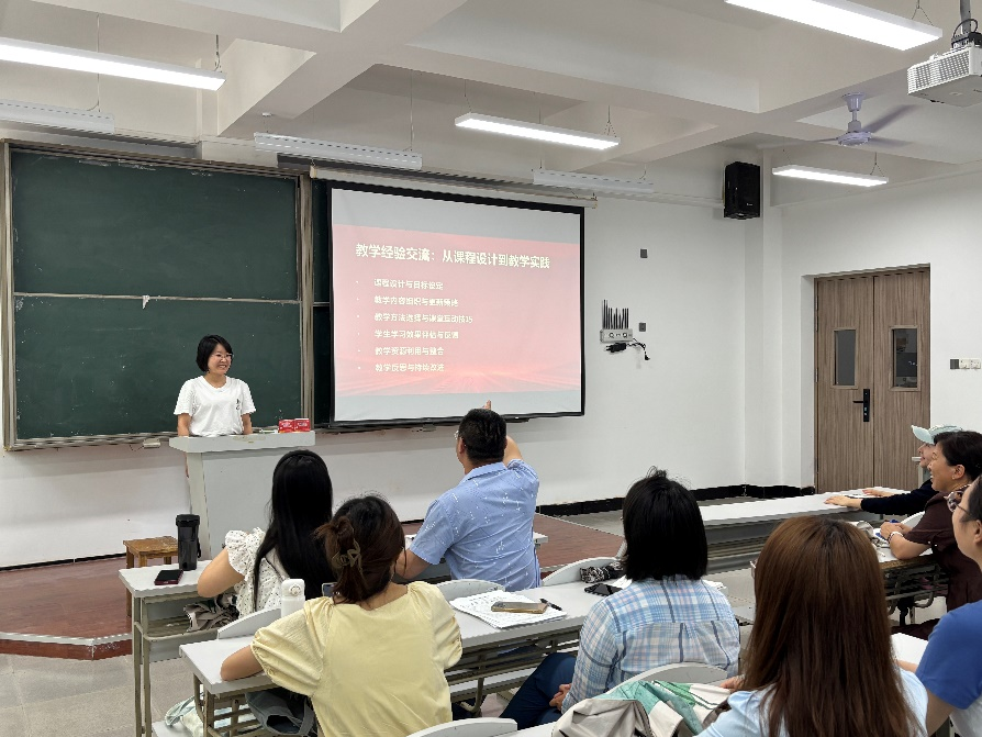 经验共分享,教学齐提升。教学经验丰富的骨干教师将自己在教学实践中的宝贵经验倾囊相授,他们结合具体教学案例,从课程设计与目标设定、教学方法选择与课堂互动技巧、课堂管理与学生参与度的提升等多个方面分享了成功做法和心得体会。薛培芹教授分享了如何运用小组合作学习模式,调动学生的学习积极性,培养学生的团队协作能力。李阳阳教授介绍了如何利用信息化教学手段,丰富教学内容,提高课堂教学的趣味性和吸引力。互动交流环节,大家还就教学中遇到的问题进行了深入探讨,共同寻找解决方案,教师们相互学习、取长补短,实现了教学水平的共同提升。