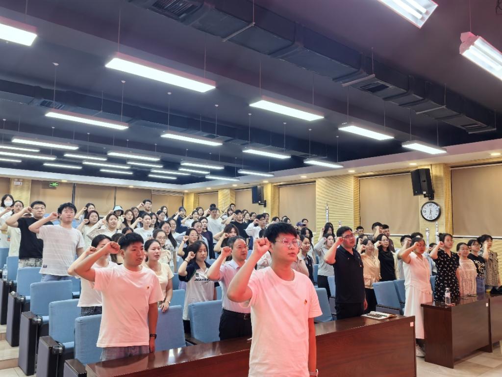 在毕业生党员李润成的领誓下,与会师生重温了入党誓词,铿锵有力的誓言震撼人心,汇聚成奔赴四方、矢志报国的时代强音。