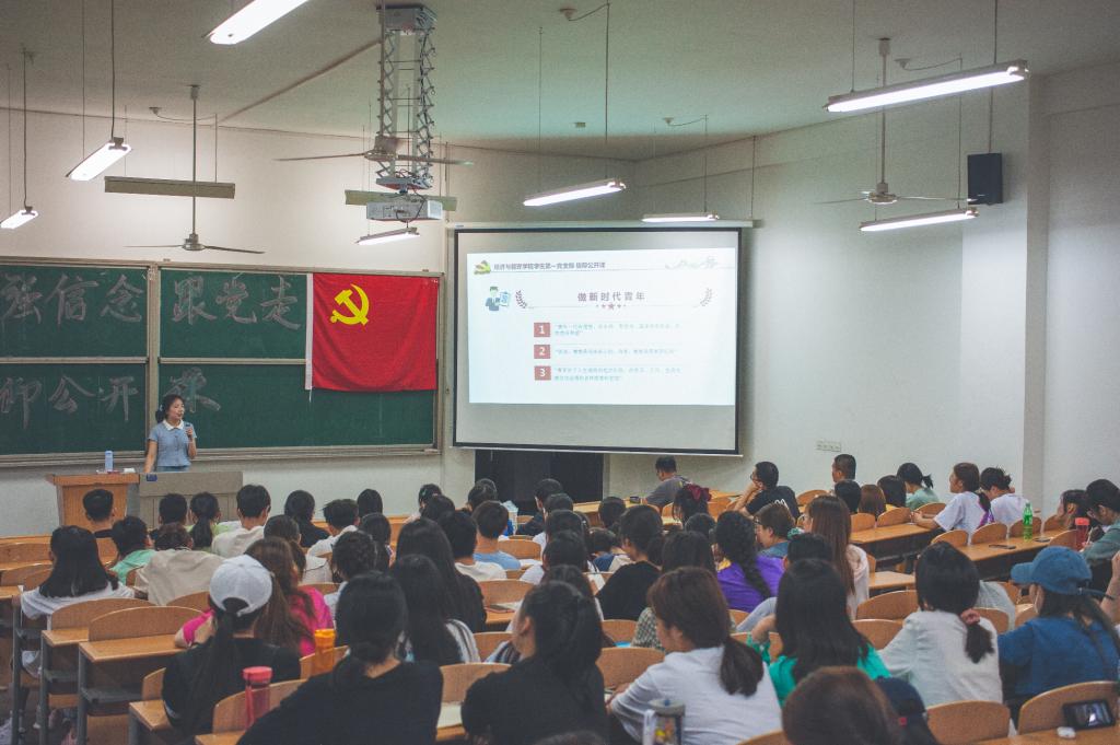 为庆祝中国共产党成立100周年,深入学习习近平总书记在党史学习教育动员大会上的讲话精神,5月20日晚,经济与管理学院学生第一党支部在立德楼401举办“学党史、强信念、跟党走”信仰公开课第一讲。本次公开课由经济与管理学院团工委书记朱妍同志担任主讲,参会人员为经济与管理学院全体入党积极分子及共青团员。