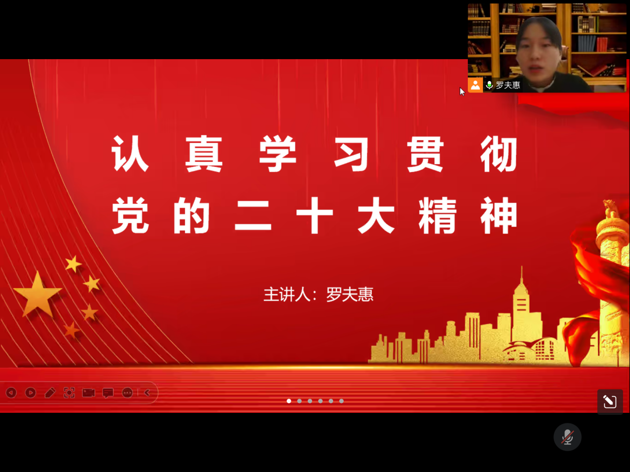 深入学习宣传贯彻党的二十大精神进一步教育引导青年党员发挥党员先锋模范作用,广大青年学生听党话、跟党走。12月15日,经济与管理学院学生第一党支部和会计学专业104052104班团支部通过线上形式共同举办“学习党的二十大精神”主题活动,经济与管理学院党委书记兼行政副院长何文举、学生第一党支部全体党员、发展对象、入党积极分子以及104052104班学生参加了本次学习活动学生第一党支部书记罗夫惠主持了会议。