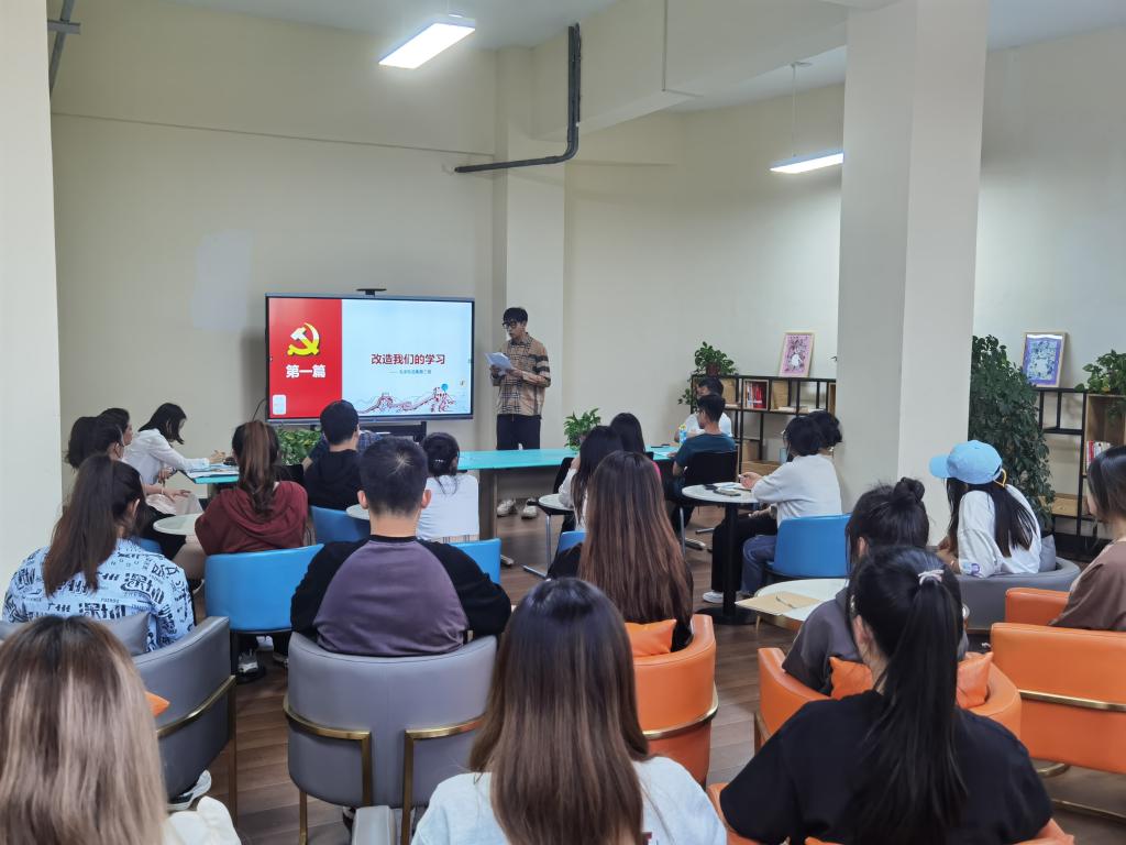 为引导广大青年学生养成阅读的良好习惯,营造书香校园氛围,在第28个“世界读书日”来临之际,经济与管理学院举办“诵读红色经典,赓续红色血脉”读书分享会。本次活动在学校图书馆汇思空间举行,支部党员、入党积极分子参加了活动,图书馆郭晓延、陈琛老师出席了活动,分享会由支部书记马子墨主持。