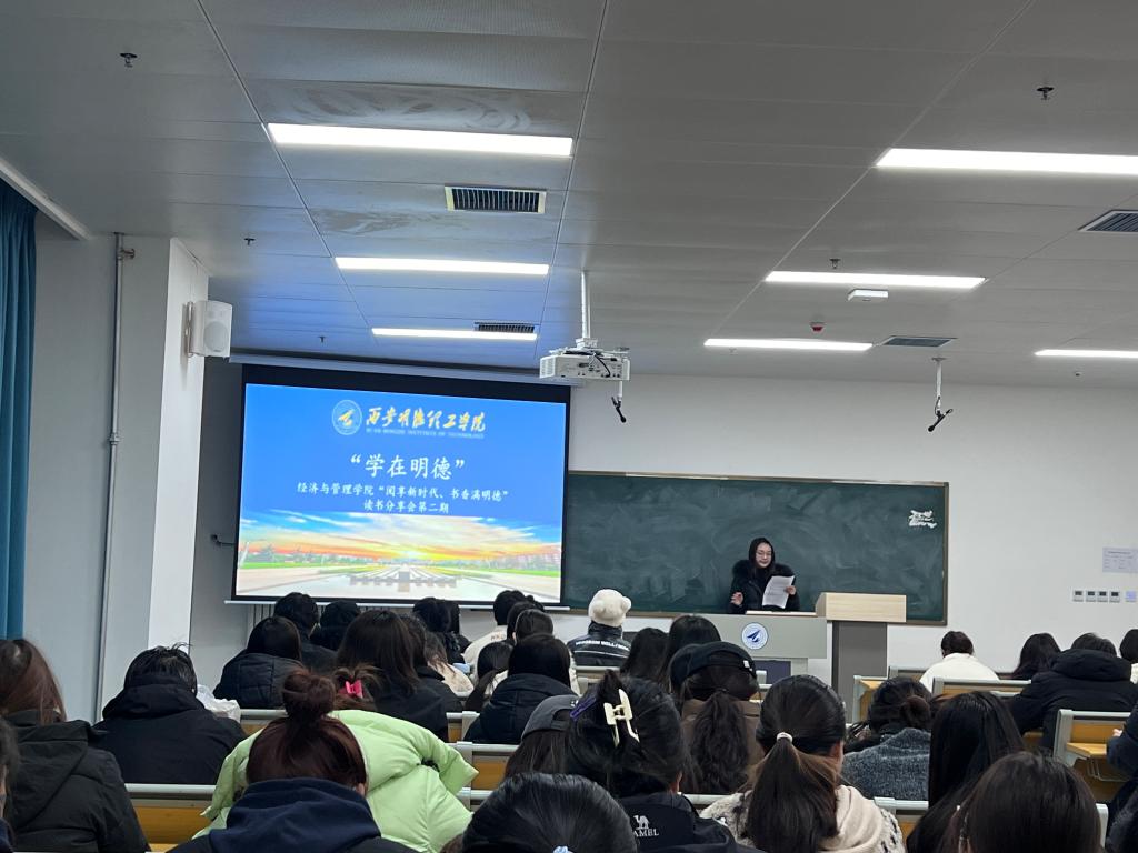为深入学习宣传贯彻党的二十大精神,建设书香校园,助力学生拓宽阅读视野,丰富精神世界,12月28日晚,经济与管理学院在7号楼805举办“学在明德”主题党日活动——“阅享新时代、书香满明德”第二期读书分享会,学院党建专干、学生党支部书记、学生党员、发展对象、入党积极分子代表共80余人参加,会议由学生第三党支部预备党员袁思梦主持。