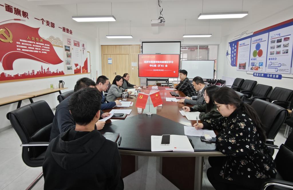 3月28日上午,经济与管理学院党委理论学习中心组在明志楼北606召开扩大学习会,学院党委委员、党建专干、师生党支部书记和团委书记参加了会议,会议由学院党委书记兼行政副院长何文举主持。