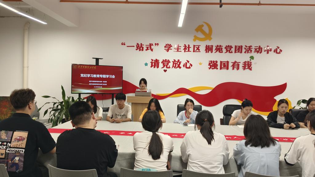 为深入推进党纪学习教育,进一步强化党员纪律意识,引导党员学纪、知纪、明纪、守纪。5月28日晚,经济与管理学院学生第一、第六党支部在桐苑“一站式”学生社区召开党纪学习教育专题学习会,两个学生支部的党员参加了学习,会议由学生第六党支部组织委员李倩主持。