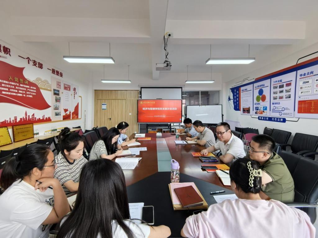 活动伊始,何文举对学校在学院党支部、党建方面工作检查时反馈的相关问题同与会人员进行了逐个分析和讨论,对存在的问题进行了指导。立项校级样本支部建设的学生第一党支部书记罗夫惠和学生第二党支部书记许柔分别做了交流发言,罗夫惠围绕规范“三会一课”和完善党员发展材料做了经验分享,许柔就如何开展党支部特色活动做了分享。学院党委副书记冯纪潮做了简要发言,对各党支部在党员发展材料和建设学习型党支部两个方面提出了建议。何文举对标教学评建观测点指标和年度目标责任,从人才培养、“样板支部”创建、“一支一品”党建品牌培育、党建研究项目开展等方面对本学期学院党建重点工作进行安排部署。他希望各党支部深入学习贯彻党的二十届三中全会精神和全国教育大会精神,立足支部实际,在党建工作规范化基础上,创新工作形式,通过项目制工作方法,凸显支部特色和亮点,擦亮学院“345”党建工作品牌,推动党建与人才培养深度融合,发挥支部战斗堡垒作用和党员先锋模范作用,以高质量党建助力学院事业高质量发展。