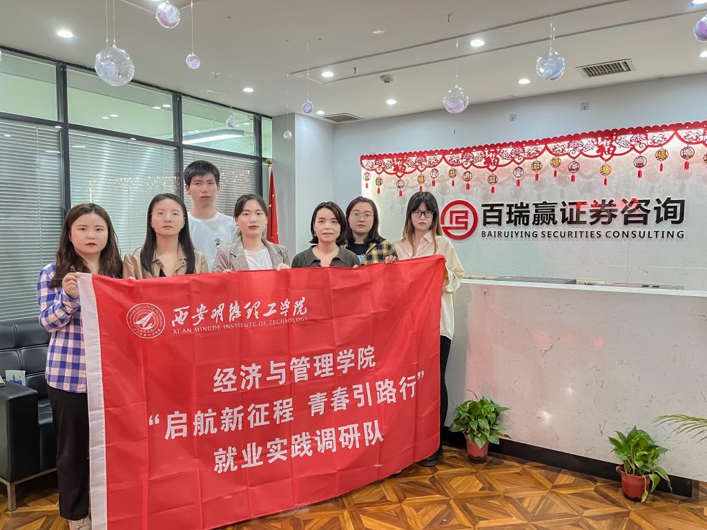 为进一步拓宽就业渠道、深化校企合作,为经济与管理学院2023届毕业生提供更多就业岗位,加深校企双方互信互通,共同培养造就创新能力强、适应社会发展需要的高质量应用型人才。7月18-25日,经济与管理学院“启航新征程 青春引路行”就业实践调研队在指导老师罗夫惠和王秀美的带领下,先后前往秦创原·西部云谷,西安启明星辰科技有限公司、西安迪科数金智能科技有限公司、安徽阳光信通电子科技有限公司西安分公司、东亚前海证券有限公司陕西分公司、陕西华恩教育科技有限公司、招商银行西安分中心、江苏百瑞赢证券投资有限公司西安分公司、西安领桥投资管理有限公司等园区和8家企业进行调研学习。学院2023届毕业生代表参与调研活动。