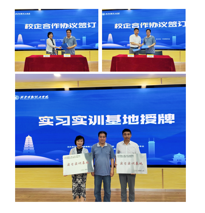 签约仪式上,郭鹏院长代表学校与陕西康养家政集团有限公司、陕西海蓓医疗健康集团公司分别签订了校企合作框架协议并向两家“校外实习实训基地”企业授牌。各方均表示,将通过校企合作与产教融合,共助大健康产业发展,开展多方面、深层次、宽领域的合作项目,努力为社会培养更多的高素质应用型健康管理人才。