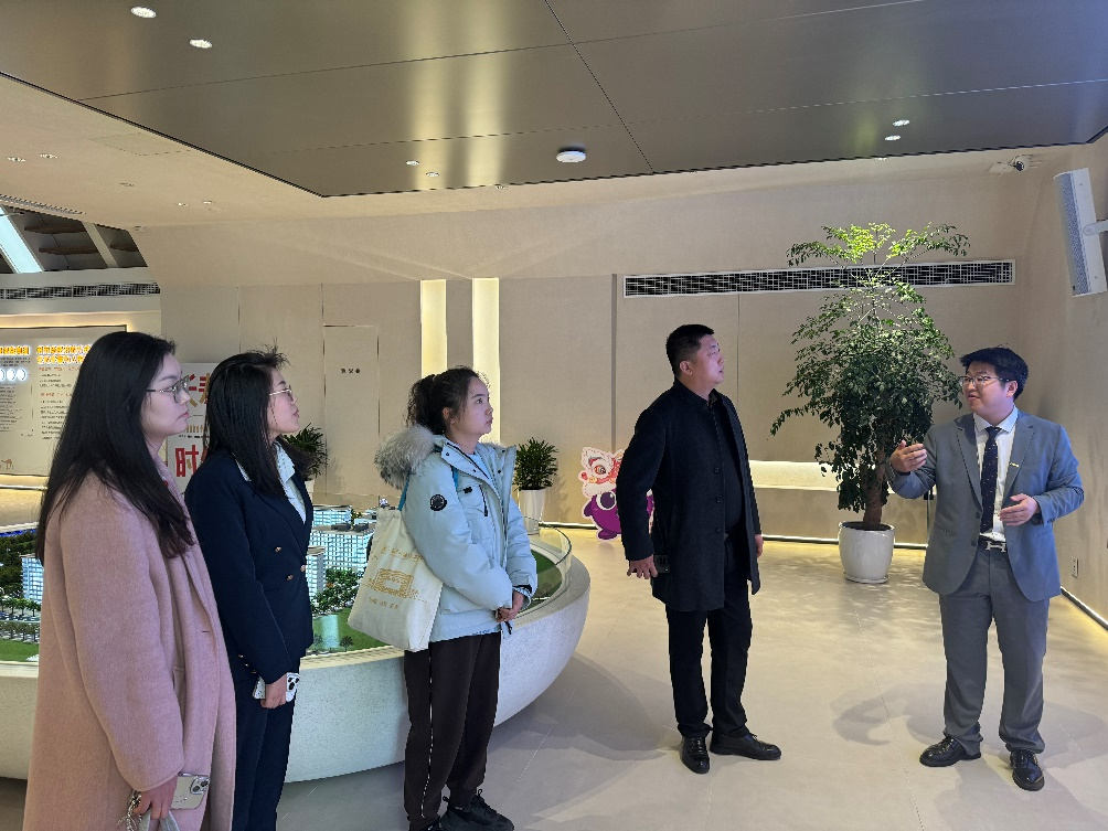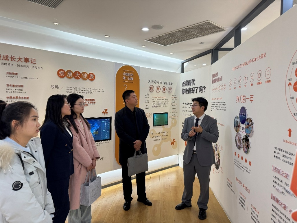 在张腾和孙佳琪的陪同下,学校一行参观了企业数字化展厅、客户服务中心及员工发展中心,深入了解企业在保险科技、健康养老、财富管理等领域的创新实践。张腾介绍了企业“长寿、健康、富足”三大闭环生态体系的战略布局,强调数字化转型对复合型金融人才的迫切需求。