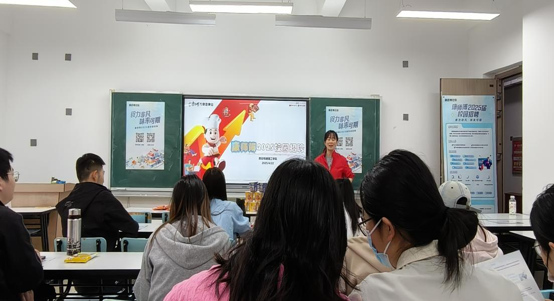 为进一步深化校企合作,拓宽2025届毕业生就业渠道,助力毕业生充分高质量就业。4月22日,经济与管理学院邀请康师傅品牌旗下子公司——西安顶益食品有限公司在树德楼203教室进行招聘宣讲,学院2025届毕业生、2026届毕业生参加了宣讲会,宣讲会由2025届毕业班辅导员井小林主持。