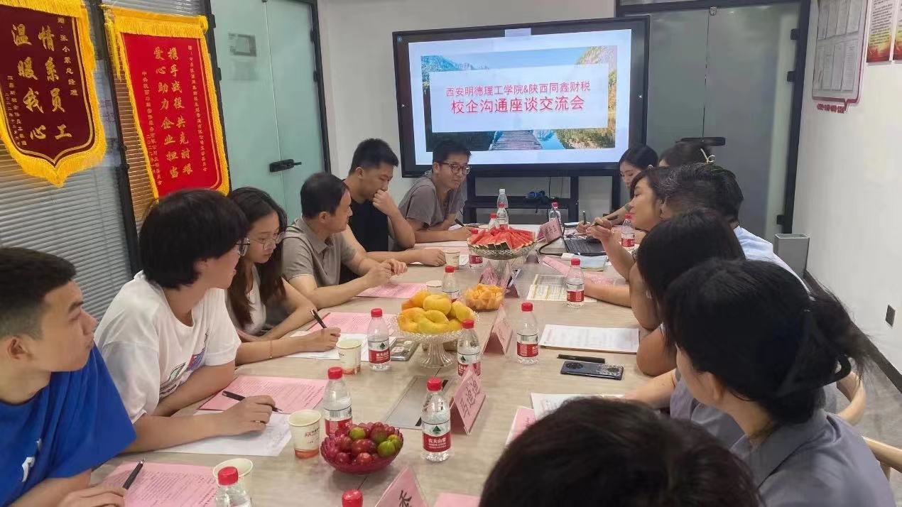 师生一行在陕西同鑫财税策划管理有限公司参访期间,行政人事部主管梁丹玉带领师生们参观了企业文化墙,财税会计部、高端部、商务部和品宣部办公环境。座谈环节,董事长安钊对beat365vip官网登录入口师生的参访表示热烈欢迎,与会人员一起观看了企业宣传介绍视频,总经理张小蒙从发展历程、组织机构、文化理念、党建工作和运营情况等方面向师生们介绍了企业概况。在企业实习的学院2024届会计学专业毕业生欧毅,分享了自身在该单位实习的感受,对企业方给予工作中的指导表示感谢,鼓励学院2024届毕业生珍惜实习机遇,在实践中提升专业技能和综合素质。校企双方就深化校企合作、拓宽就业渠道、加强就业指导、提高毕业生就业竞争力等方面主题进行了深入交流,并达成合作意向。