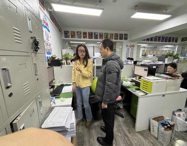 走访期间,西安小桔花财税咨询有限公司总经理陈敏向何文举、马朝辰介绍了企业发展概况和人才需求情况,并参观企业办公环境、现场了解财税岗位具体工作内容,陈敏从打好专业基础、明晰个人职业发展方向、端正求职态度等方面和毕业生马朝辰进行亲切交流。