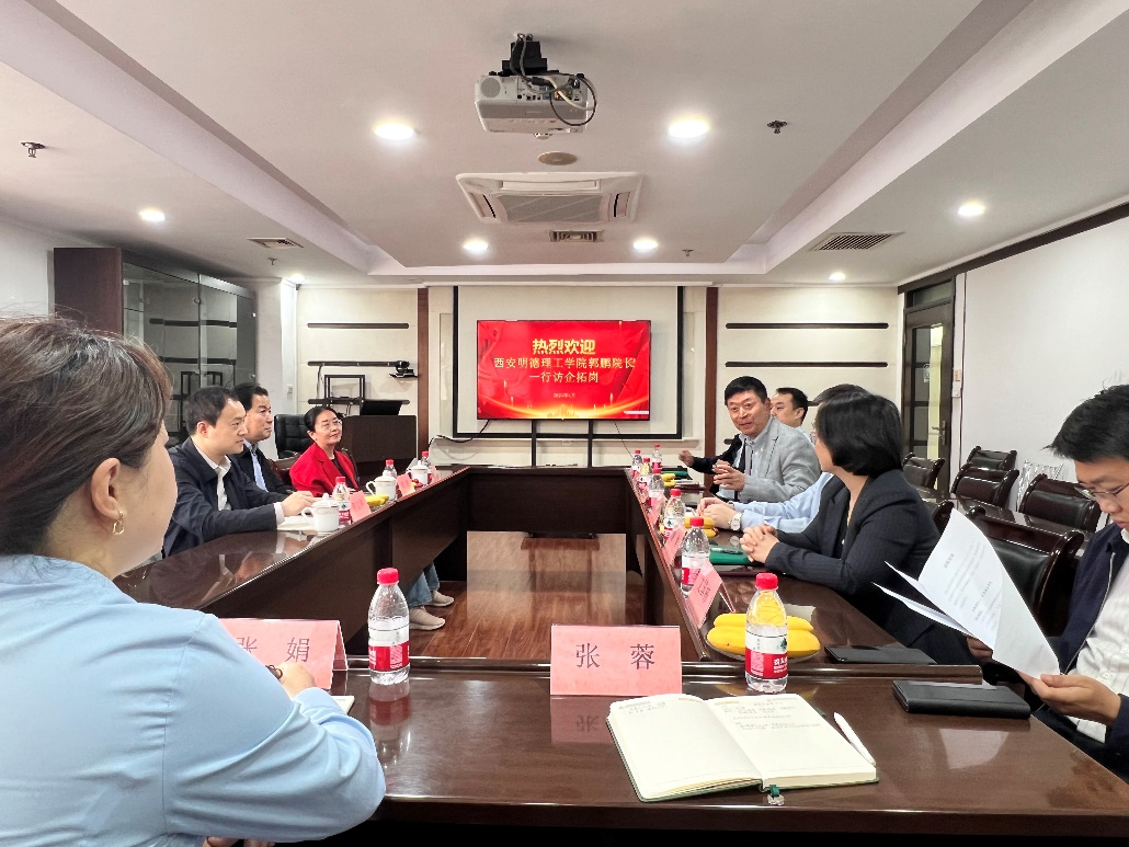 交流伊始,陕西时代投资管理有限公司董事长曲非首先对学院一行的来访表示欢迎,从企业板块、发展历程、主营业务和企业文化等方面介绍了集团概况,与会人员一同观看了企业宣传视频。郭鹏院长对企业方的热情接待表示感谢,从学校历史沿革、办学规模、人才培养质量、社会评价、招生就业、校企合作等方面介绍了学校和二级学院基本情况并说明本次来访目的。何文举对企业方为毕业生提供的就业岗位表示感谢,就2024届毕业生需求同企业人员进行交流,了解人才需求信息。刘敏就校企共建金融类专业学生实习基地做了说明。随后,双方围绕实训实习基地建立、毕业生校园招聘、财经类人才培养模式和双师型教师培养等事项进行深入探讨,气氛热烈融洽。