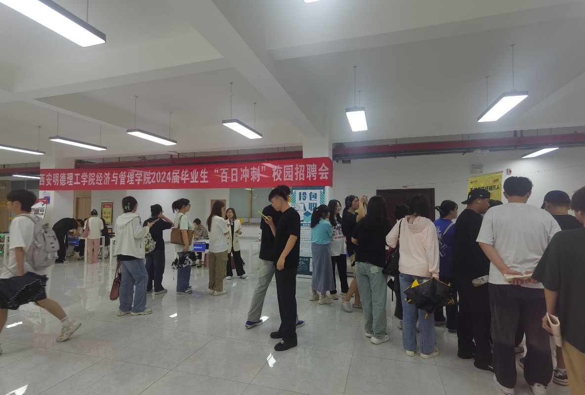 为更好贯彻落实教育部、陕西省委教育工委教育厅关于推进高校毕业生就业工作的决策部署,全力迎战毕业生就业“百日冲刺”关键期,促进毕业生充分高质量就业。5月29日,经济与管理学院在学校明志楼北厅举办2024届毕业生“百日冲刺”专场招聘会。西安山君企业管理有限公司、陕西泾航企业管理集团有限公司、陕西六星为您服务有限公司、陕西华创企业集团有限公司等8家企业参会,提供岗位需求百余个,经济与管理学院2024届在校未就业的毕业生参加了应聘。