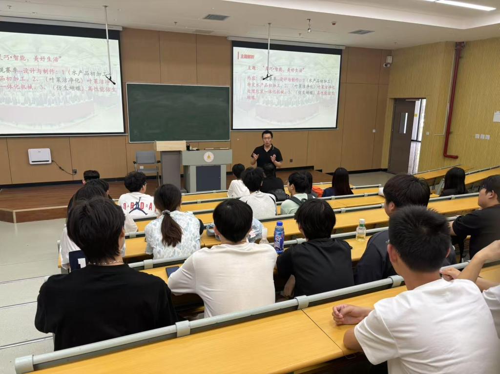 在解析会上,朱伟老师结合过往经验,强调参赛作品应将智能技术与机械创新相结合,并建议学生们深入水产加工厂、菜市场、海鲜市场、蔬菜基地进行调研,以确保设计的实用性。