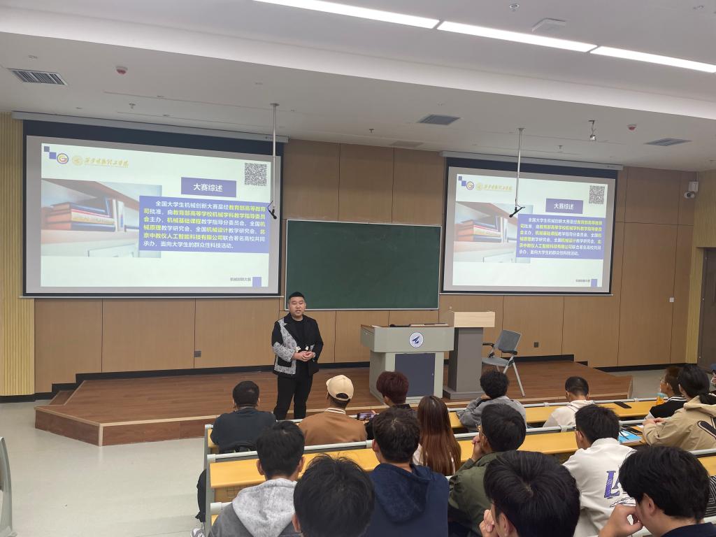2023年10月11日下午,beat365第十一届全国大学生机械创新设计大赛主题解析宣讲会在教学楼8号教学楼101顺利举办。100多名师生参与会议。