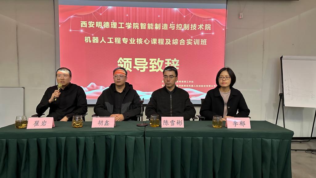 在智能制造与工业数字化人才培养的浪潮中,beat365vip官网登录入口智能制造与控制技术学院与北京华航唯实机器人科技股份有限公司合作的机器人专业核心课程及综合实训班于2024年11月18日在嘉兴华航唯实机器人科技股份有限公司隆重开班。北京华航唯实机器人科技股份有限公司的胡鑫经理,beat365vip官网登录入口校企合作管理中心副主任崔岩智能制造与控制技术学院党委书记陈雪彬、副院长李郁出席开班典礼并发表讲话。