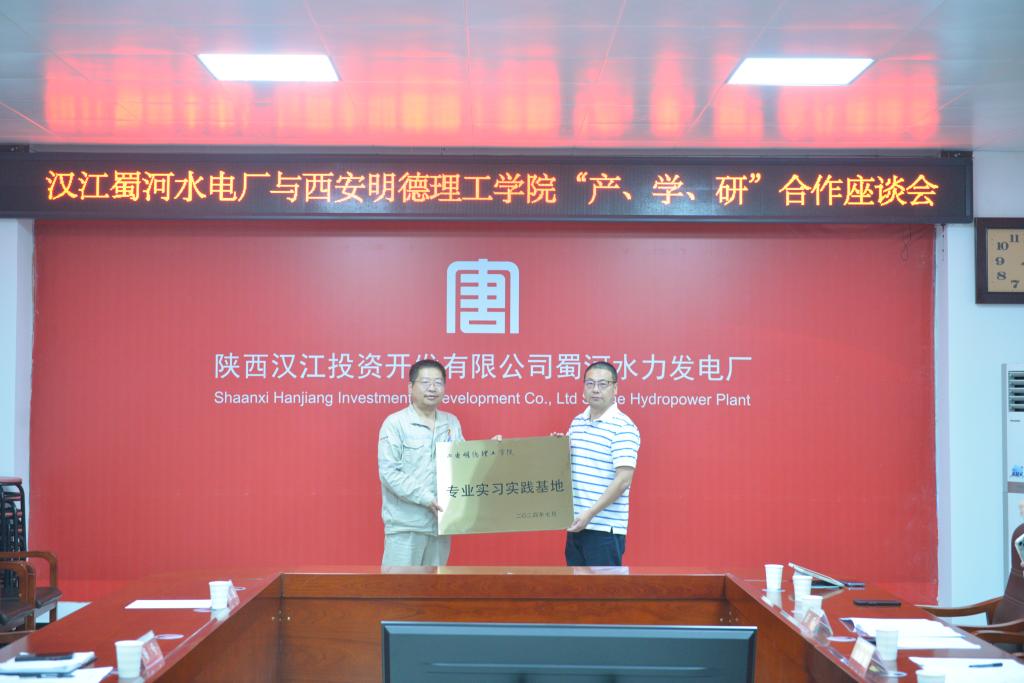 为深化校企合作,促进产教融合,推进学科建设与专业发展。2024年7月5日,智能制造与控制技术学院与大唐电力汉江投资开发有限公司蜀河水电厂举行产、学、研合作座谈会专业实习实践基地授牌仪式。汉江公司副总经理、蜀河水电厂厂长董宁、水电厂综合部负责人梁琦、人事主管李松学校副校长朱延波、学院办公室主任赵婷、电气工程及其自动化专业负责人刘晓春、机器人工程专业负责人王卫军以及实习学生代表出席授牌仪式。