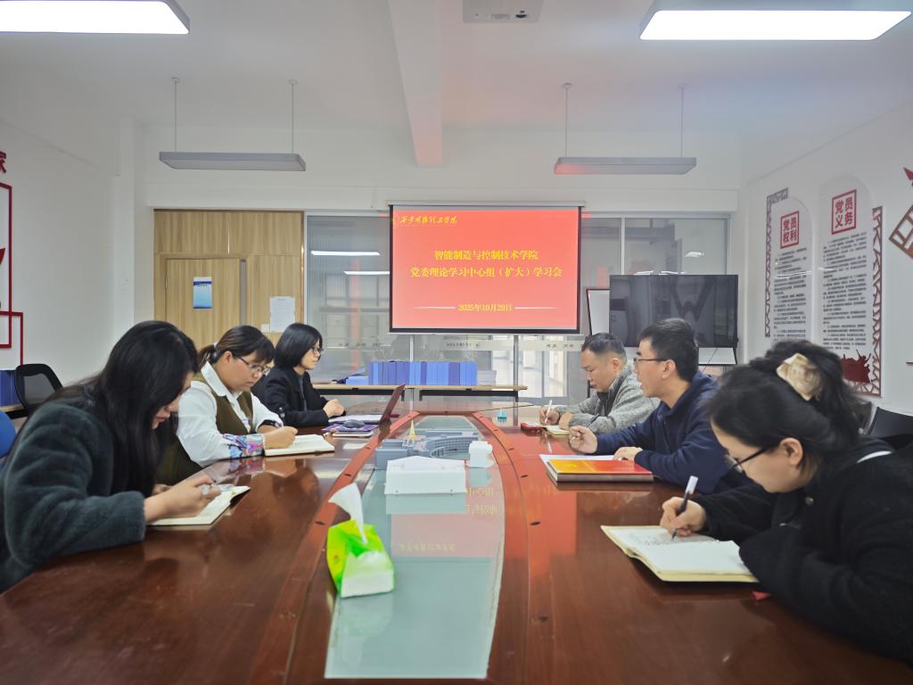 10月29日智能制造与控制技术学院在学院“党员之家”会议室召开党委理论学习中心组专题学习会学院党委委员、各党支部书记参加会议会议由学院党委书记陈雪彬主持。