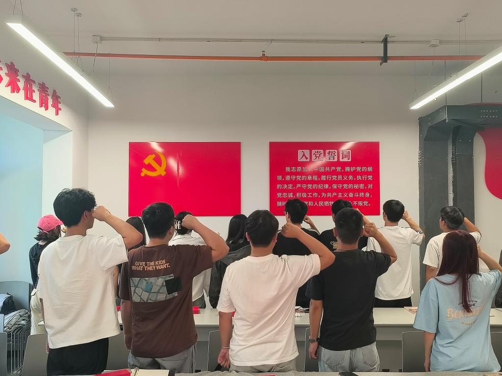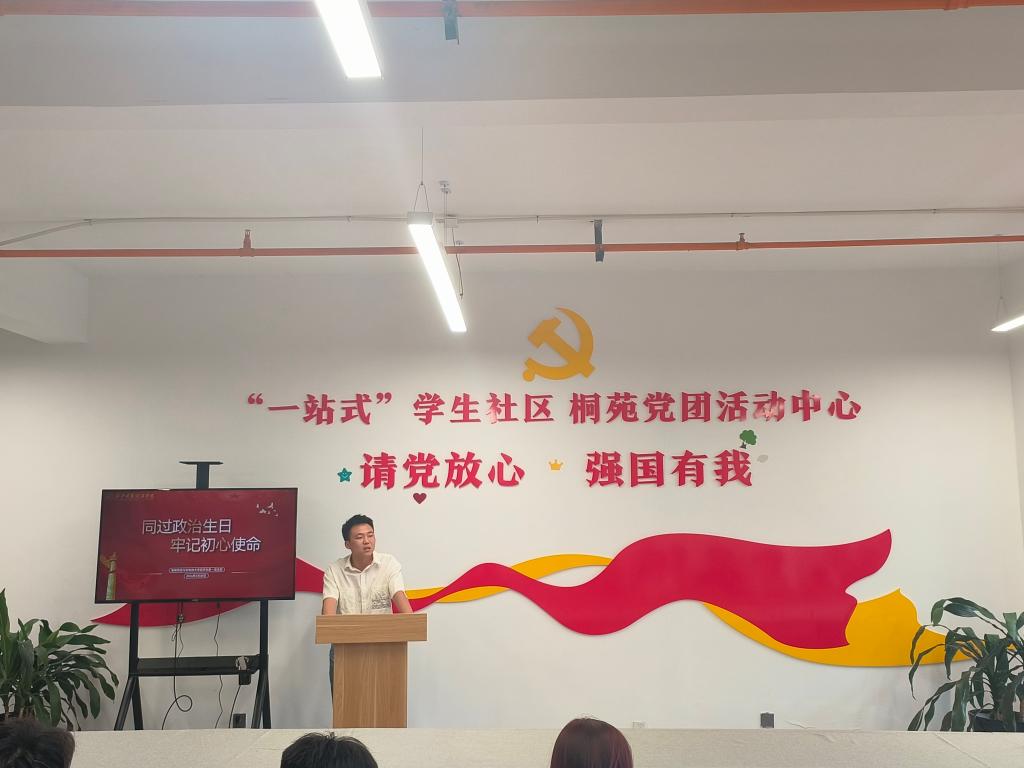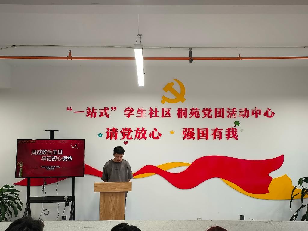 组织委员李叙辰带领全体党员面对党旗重温入党誓词。随后,党员代表李鹏伟、陈俊霖发表了过政治生日的感言,分享了自己入党初心及入党以来的成长和体会。他们表示,在今后的工作和生活中,将始终牢记党员的责任和使命,严格要求自己,坚定理想信念,不忘初心,继续前进,以实际行动践行党的宗旨,为党的事业贡献自己的力量。