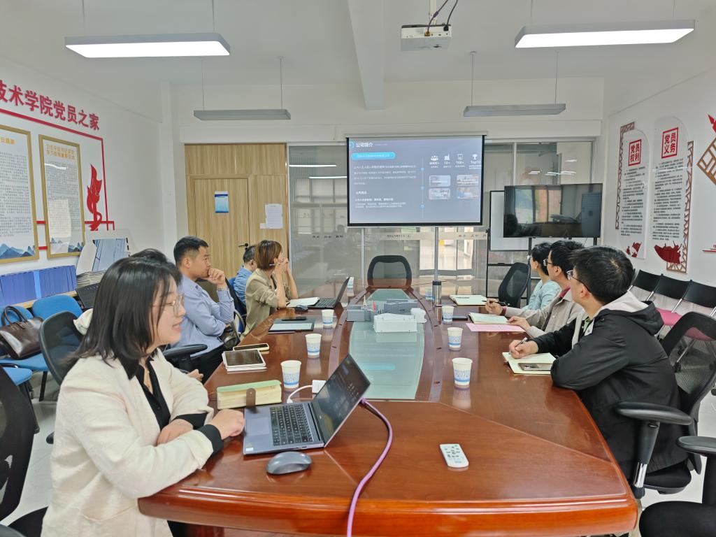陈雪彬代表学院对西安天茂智能科技有限公司一行到访表示热烈欢迎,并学校和学院的基本情况、办学特色以及与西安天茂智能科技有限公司的合作意向做了介绍。天茂智能科技有限公司项目管理部经理王亚娟对公司基本情况和核心业务做了介绍,分享了与国内其他高校的合作经验。双方就合作意向进行了深入交流,在课程建设、实验室建设、师生培训、低空经济人才培养方面达成了初步共识。