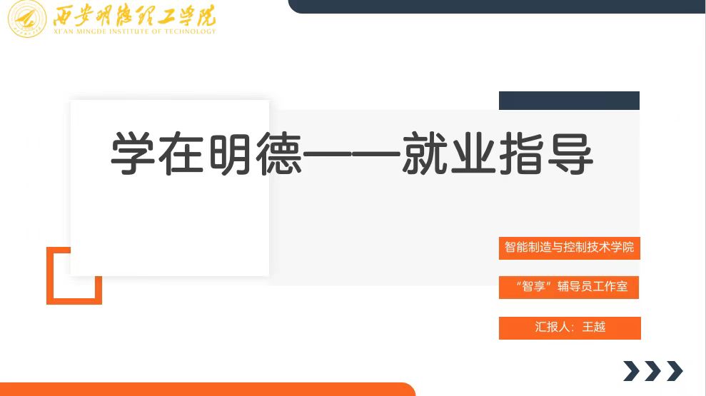 会上,2024届毕业班辅导员王越就参加11月10日-12日陕西省就业与留学服务中心和北森生涯联合举办的“高校就业指导师”培训内容,分别从毕业生就业形势和求职动力、机会盘点和机会分析、简历技巧和面试辅导三个方面进行分享交流。并结合自身工作经验,为辅导员讲解就业指导的重要性和相关工作方向。