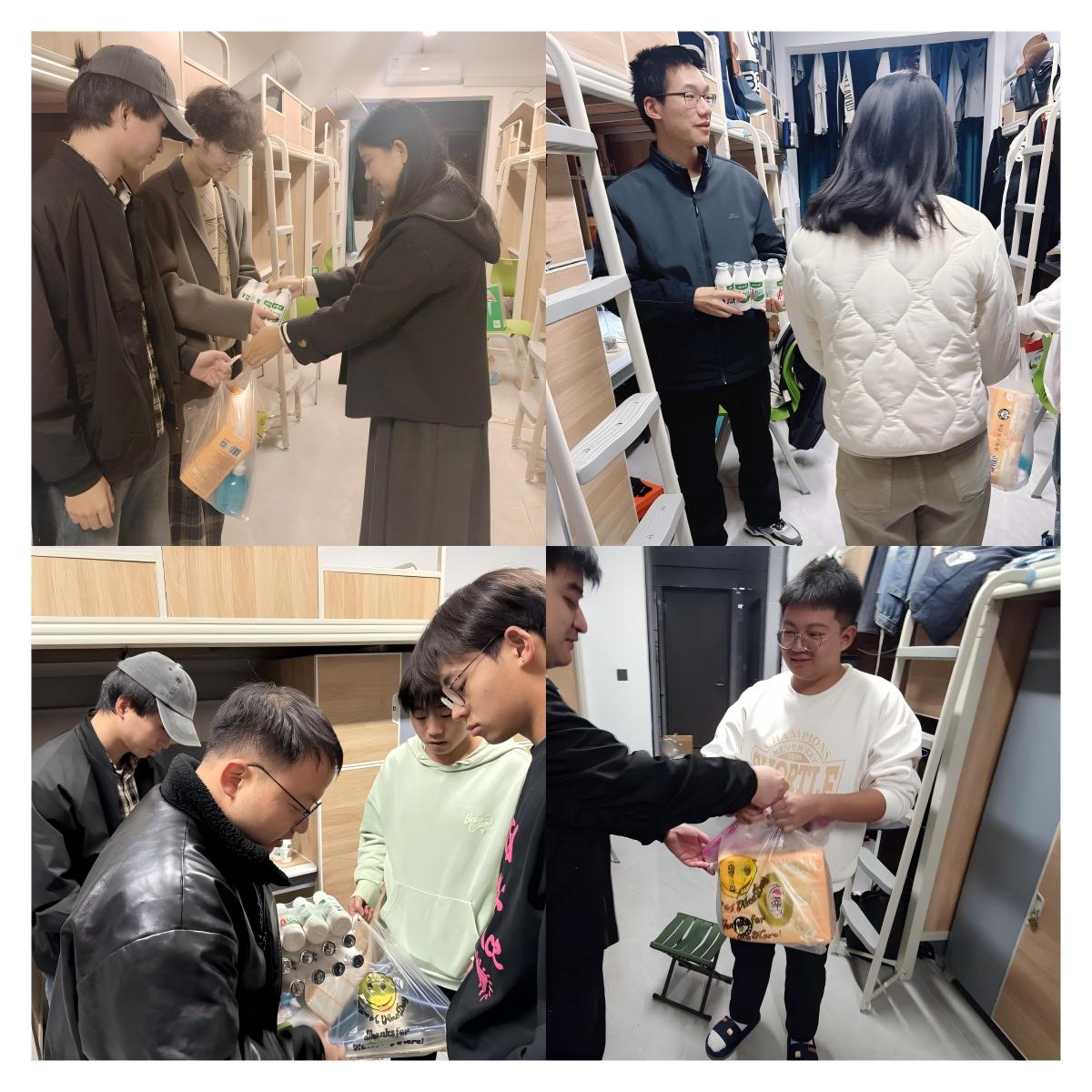 本次活动开始我院学工干部首先向各学生宿舍送去了洗洁精、洗衣液、晾衣架等慰问品,并向同学们详细介绍冬季常见传染病的传播途径、症状识别耐心地向同学们讲解了冬季传染病的预防要点,如勤洗手、多通风、保持个人卫生在出现发热、咳嗽等症状时应及时就医等此外,学院全体学工干部同时学生宿舍内的电器使用情况进行了检查,对个别宿舍电子产品使用不规范、物品归整不合理进行了整改对插线板的正确摆放、线路的合理规划以及禁止在宿舍内吸烟和使用大功率电器进行了正向引导,对发现可能存在的安全隐患和风险,及时进行处理和化解。