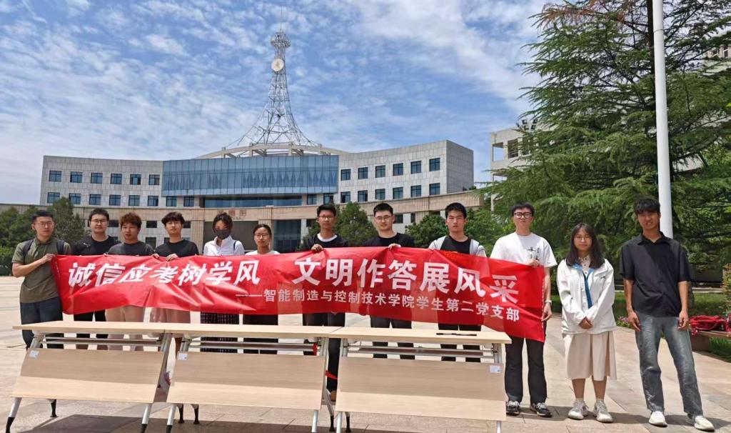为弘扬学术正气,筑牢诚信基石,营造风清气正的考试氛围,63午,智能制造与控制技术学院学生第二党支部在学校中心广场开展了“诚信应考树学风,文明作答展风采”党建促学风诚信考试签名活动。