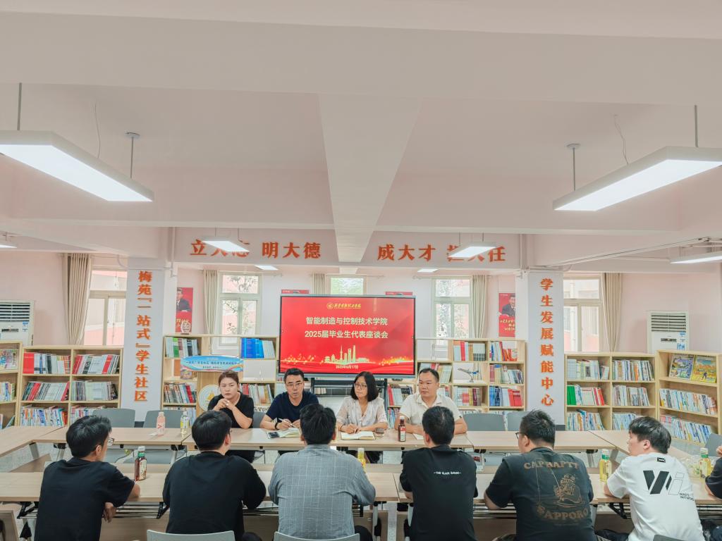 6月17日下午,智能制造与控制技术学院在“一站式”学生社区梅苑学生发展赋能中心召开2025届毕业生代表座谈会。学院党委书记陈雪彬、副书记曾凯、副院长李郁、毕业班辅导员及学生代表等20余人参加会议,曾凯主持座谈会。