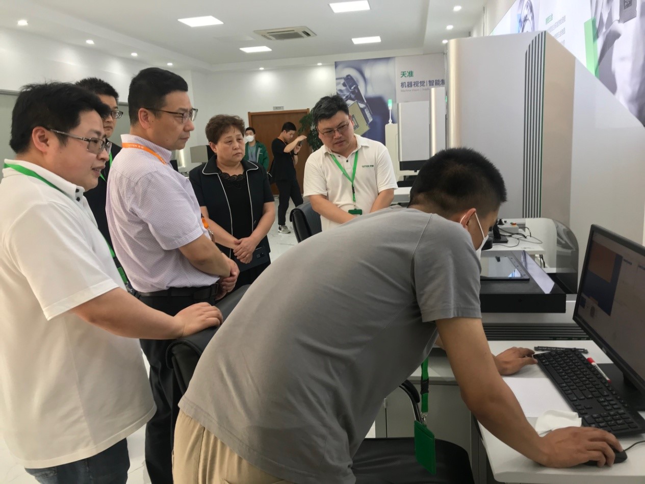首先,双方进行了单位情况介绍。并参观了天准公司的光伏硅片检测设备、3D玻璃曲面检测设备、激光直接成像设备、点胶检测一体设备和智能仓储等设备的生产、组装和调试车间,了解其研发团队的相关工作内容和方式。
