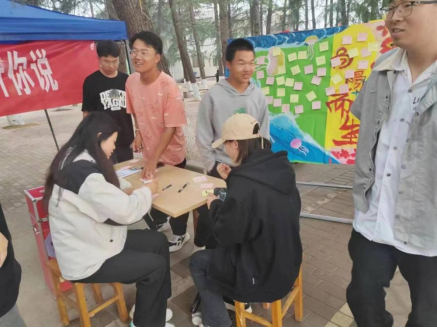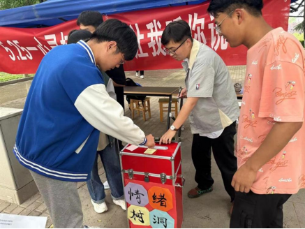 本次活动采用展板及情绪树洞箱的方式收集同学们想要倾诉的心声,一部分同学将写有自己想要分享的喜悦及对同学的暖心寄语的便利贴贴在展板上。一张张充满温情的便利贴汇聚在一起,成为教学楼一道特殊的风景线,吸引过往的师生们驻足观看,也深深打动了每个人的心。另一部分同学将“悄悄话”及倾诉烦恼的便利贴投放到工作人员提前准备的心灵树洞箱里,活动结束后,由志愿者们在保护同学隐私的前提下为同学们给予暖心回复并提供合理帮助。