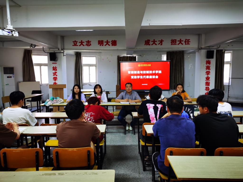 为进一步贯彻落实陕西省教育办公厅《关于开展第二届高校资助育人主题活动和评选高校资助育人典型案例的通知》精神,引导学生坚定理想信念、涵养奋斗品行,德智体美全面发展;激发学生自立自强、勤奋创新,教育学生自觉做社会主义核心价值观的坚定信仰者、积极传播者和模范践行者。智能制造与控制技术学院于6月18日下午在“一站式”学生社区组织召开了“感恩资助·励志成才”的受助学生代表座谈会。学院党委副书记曾凯,资助专干王越,辅导员代表以及受助学生代表参加座谈。