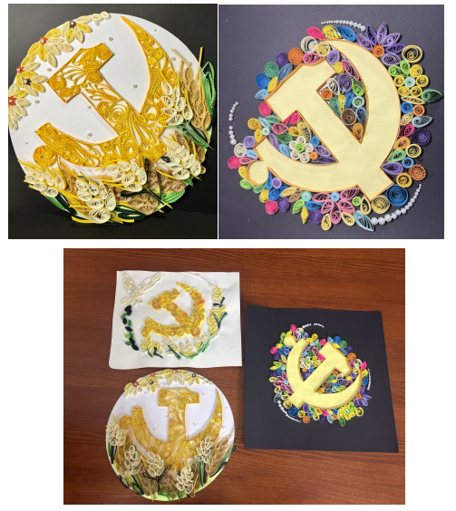 两个小时的精心创作后,一幅幅饱满立体的衍纸党徽作品陆续完成。活动现场,色彩缤纷的衍纸条在学生党员们的手中翻转、卷曲、粘贴,逐渐勾勒出党徽的鲜明轮廓。“每一次卷曲、每一处粘贴,都是我们对党的精神的一次体悟。”在创作过程中,大家不仅沉浸于衍纸艺术的精巧创作,更在勾勒党徽的细节里,重温了党的百年奋斗历程,让红色信仰在心底愈发坚定。