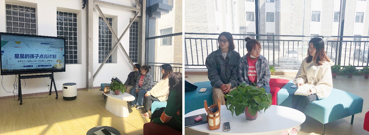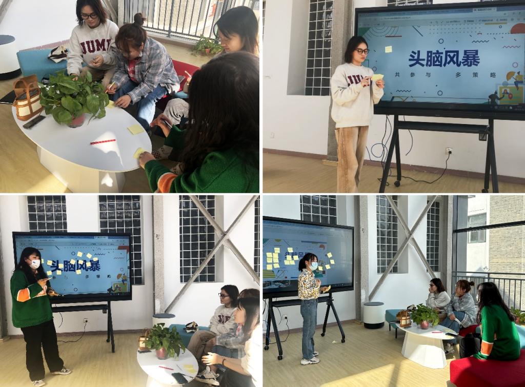 学生会主席王越扬对首批合作的特教中心的机构背景、教师构成、服务对象做简要汇报。参会同学就个人专长、教课经验做交流分享。随后,院团委书记兰艳带领同学通过头脑风暴对此次活动的要点和重难点进行讨论及策划。同学们在激烈探讨中快速写下创意想法,并上台做构想阐述。最终归纳为自闭症儿童的教育侧重、趣味学习的培养形式、结合手工艺和绘画的课程内容、建立信任的激励载体四个开展要点。